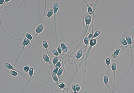 これを私たち研究チームは「隠れ異常精子」と呼んでいますが、この隠れ精子異常は、一般精液検査では検知することができず、また男性不妊治療を難航させる原因になり、さらには生まれてくる子供へのリスクにも繋がりますので、とても厄介者です。ですから、治療を開始する前に「隠れ異常精子の存在の有無を確認しておく」ことが必要不可欠であり、同時に、もし隠れ異常が認められた場合には事前に「隠れ異常精子が排除されている」ことが大前提になります。以下の隠れ異常精子の写真をみてください。